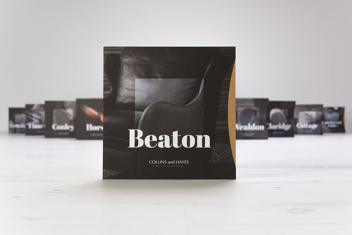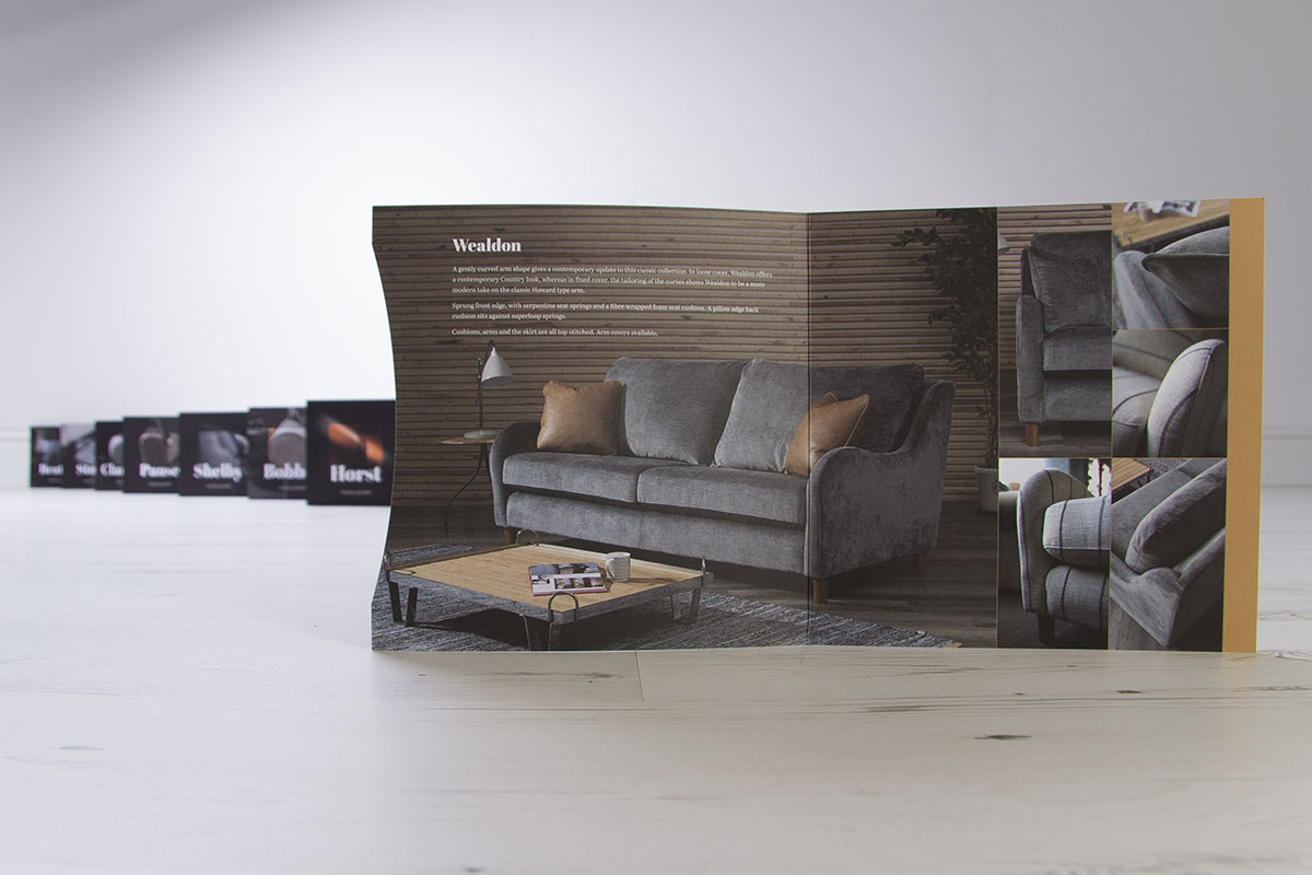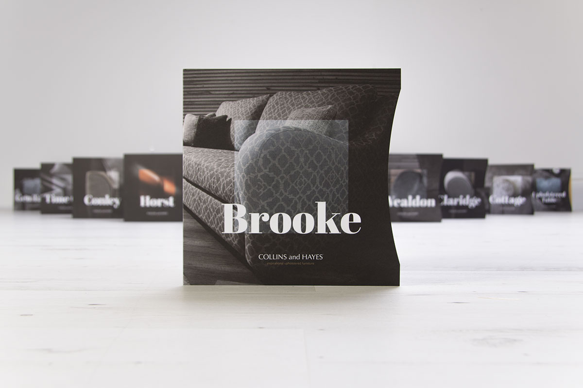 Conceived during the initial stages of a creative brand repositioning. This is the first real manifestation of the reach of the new look. Printed onto a tactile card stock that emulates the ‘feel-me’ nature of the furniture fabrics, it’s an unusual square size, with revealing die-cut to entice.