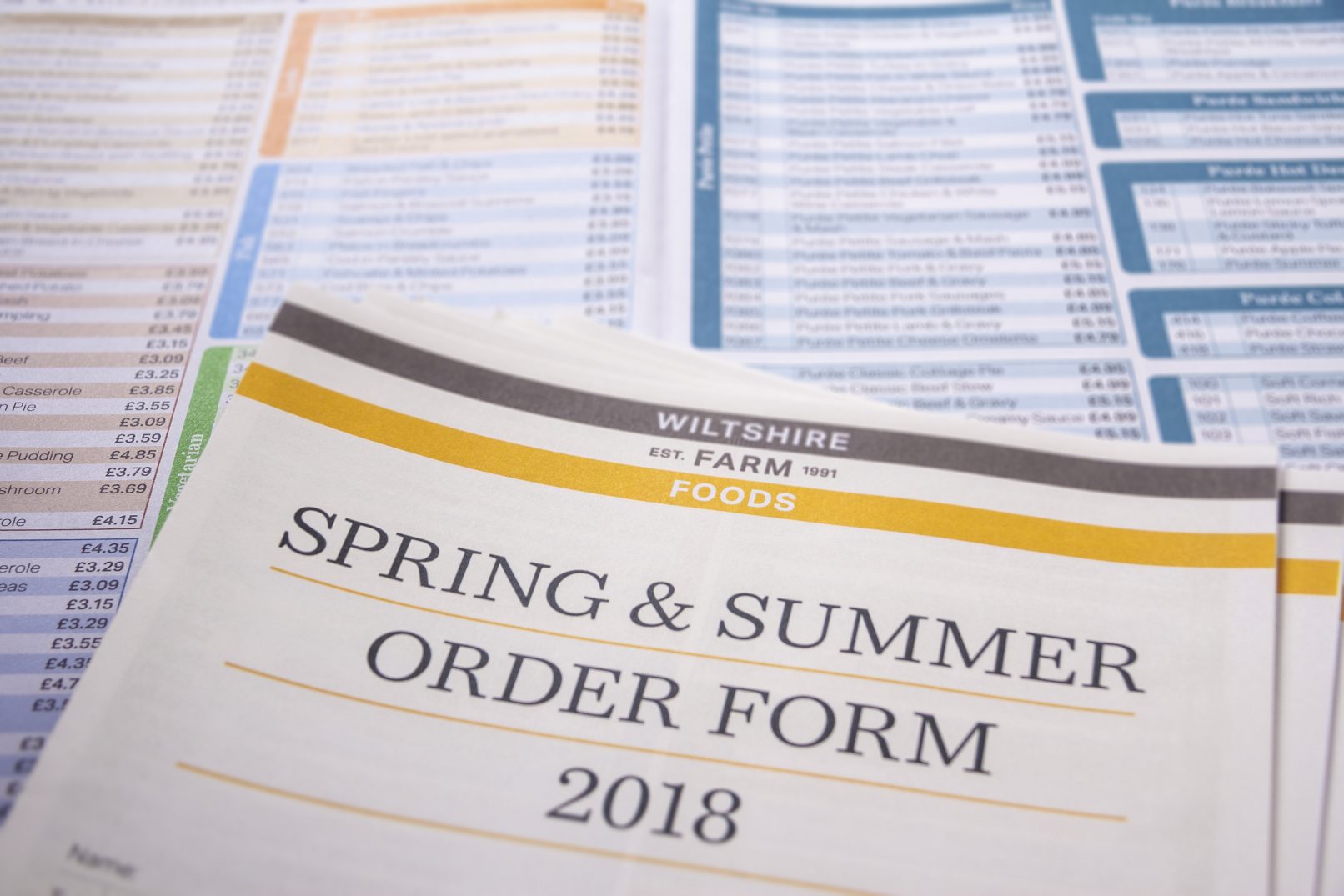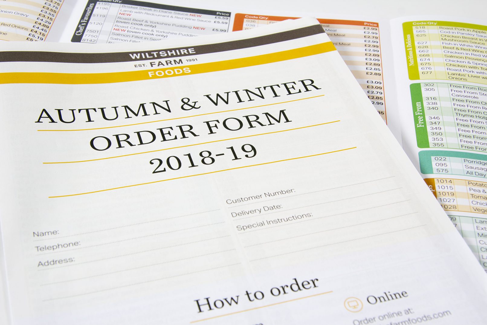 Wiltshire Farm Foods provide home delivery of meals across the country. For many years we have designed the order form which they send to customers alongside the brochure.